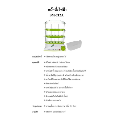 • -29% OTTO หม้อนึ่งไฟฟ้า 7.5 ลิตร 850w รุ่น SM-212A